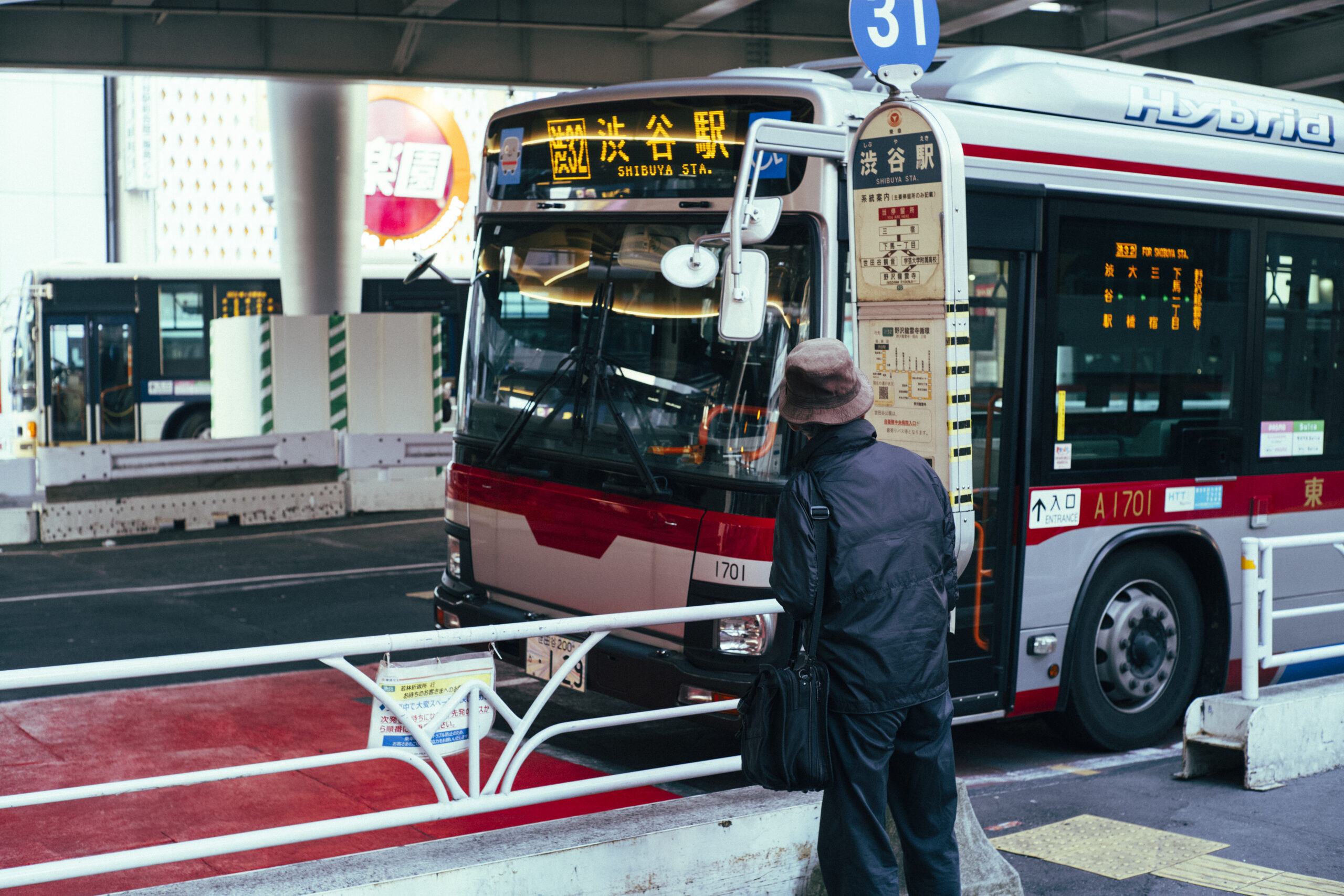 大雪の影響で電車がとまり、バスで帰路を急ぐ人たち